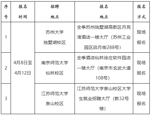 本次校园招聘设三个报名点。报名时间、地点、报名方式以及咨询电话安排如下: